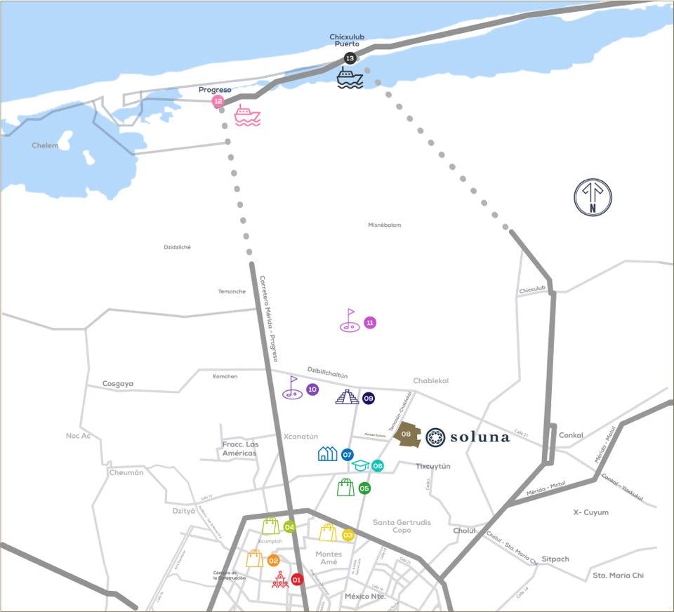 Soluna se encuentra en Carretera Temozón Norte · Chablekal Km. 1.3, Tablaje 19431 Mérida Yucatán C.P 97302.